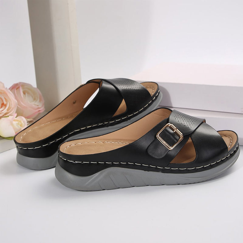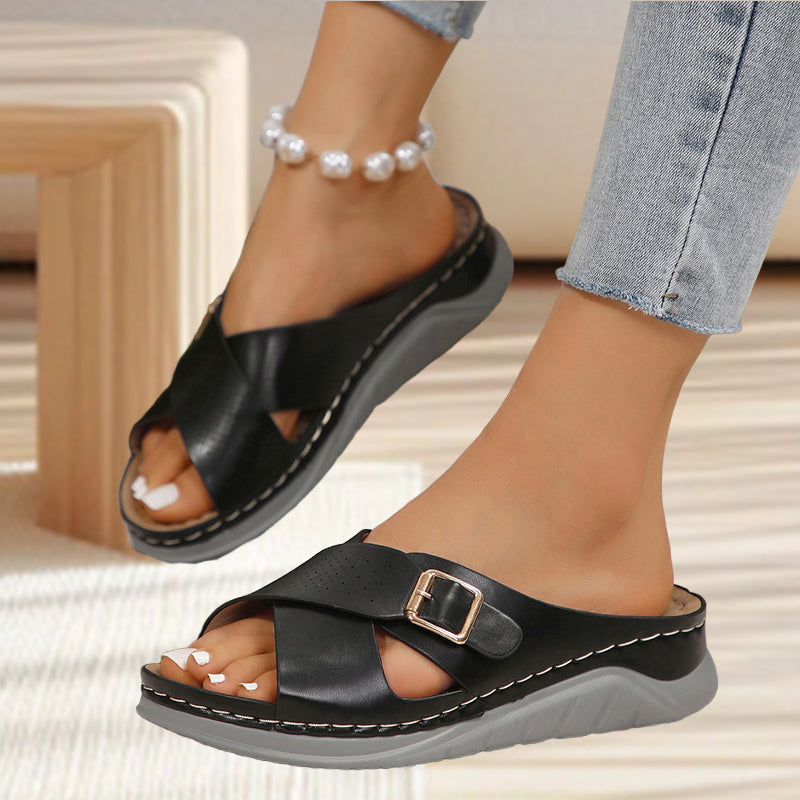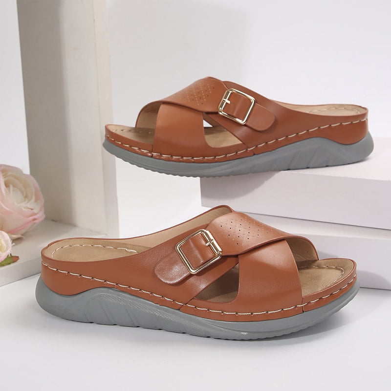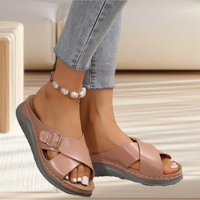 Enfärgade Tofflor för Kvinnor med Korsat Spänne