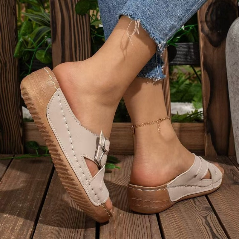 KOMFORTABEL WEDGE LIFT: Dessa sandaler är designade med en stödjande wedge-plattform som ger en naturlig höjdökning utan att kompromissa med stabilitet eller komfort.