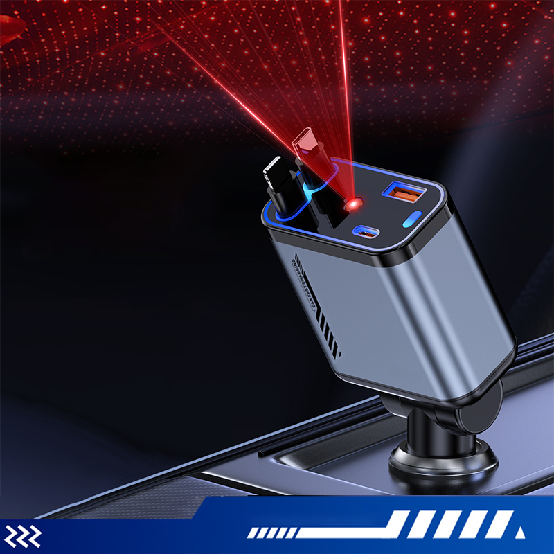 Multifunktionell snabbladdare för bil med infällbar kabel