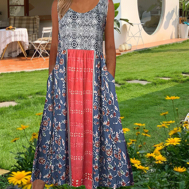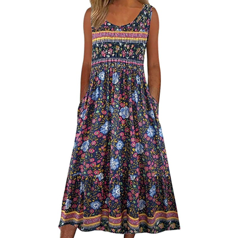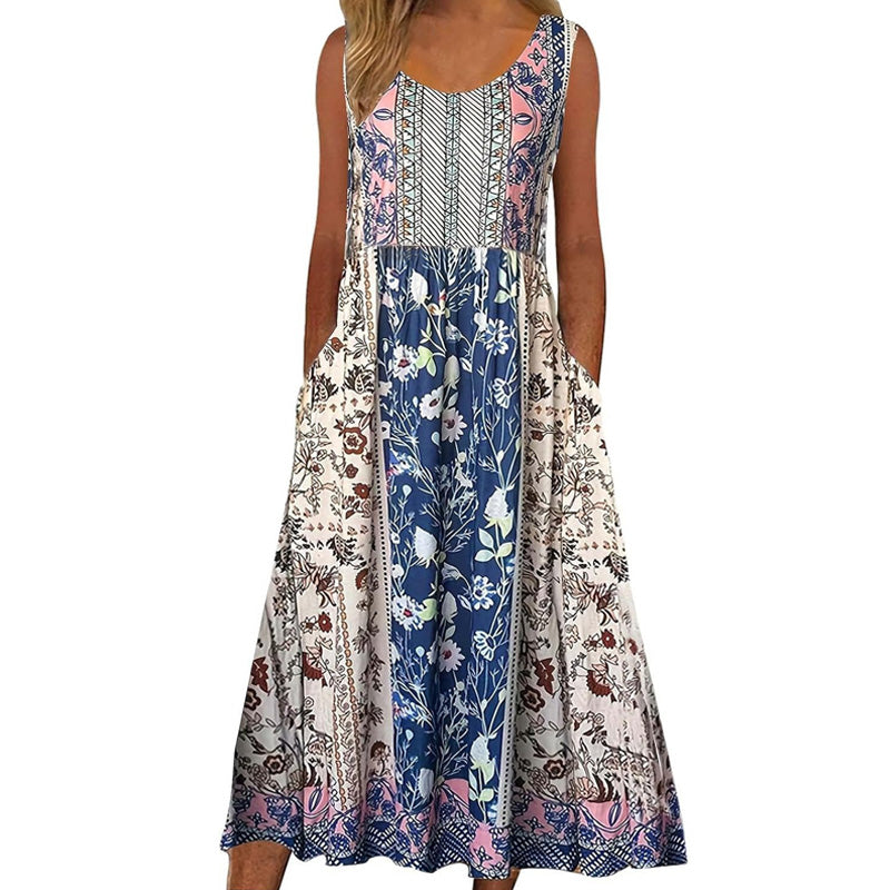 LÅNG ÄRMLÖS DRESS: Denna ärmlösa klänning med en lång kjol ger komfort och andningsförmåga under varma dagar, samtidigt som den ser avslappnad och snygg ut.