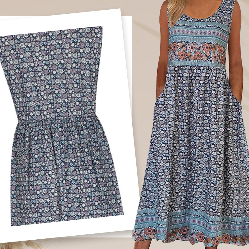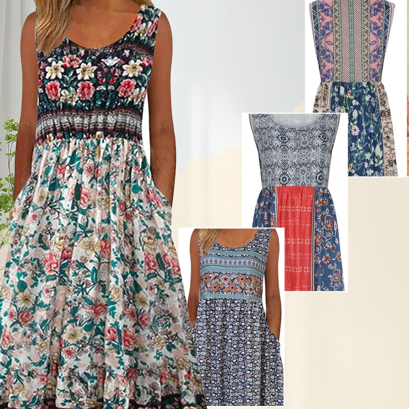 Paketet innehåller: 1 * Ärmlös klänning för kvinnor med blommigt tryck med blommigt tryck.