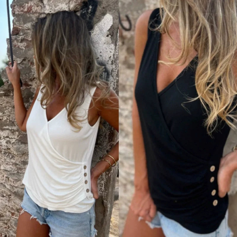 Paketet innehåller:1*Knapp Kors V-Neck Tank Top
