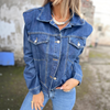 KLASSISK DESIGN – Denimjackan har en tidlös stil med sin klassiska blå tvätt, vilket gör den till ett mångsidigt plagg som aldrig går ur mode. Oavsett om du kombinerar den med klänningar, avslappnade t-shirts eller lager på lager när det är kallare väder, passar denna jacka alla årstider och håller dig stilfull året runt.