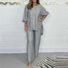 Bekväm och smickrande snitt: Toppen och byxorna är gjorda med högkvalitativa material som erbjuder ett bekvämt och smickrande snitt. Den långsiktiga toppen erbjuder en avslappnad men justerad filt och silhuett, medan de breda benbyxorna erbjuder en förlängning och toleranseffekt, vilket gör den lämplig för olika typer av kroppar.