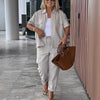 Set med kortärmad skjorta och lösa byxor i bomull-linne