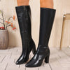 Kvinnors knähöga stövlar med tjock klack och spetsig tå