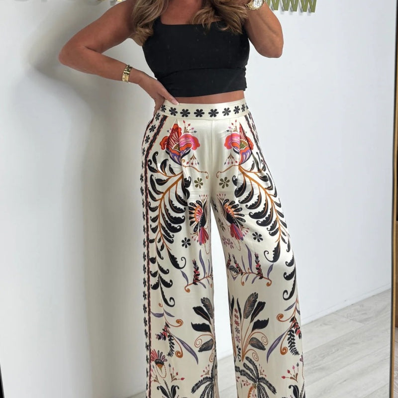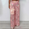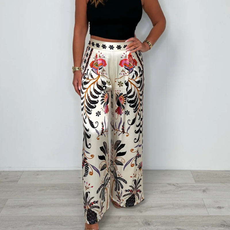 Paketet innehåller:1*Dambyxor med vida ben i tryckt satin för kvinnor