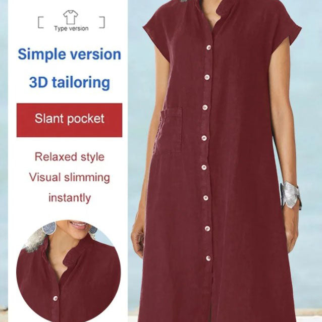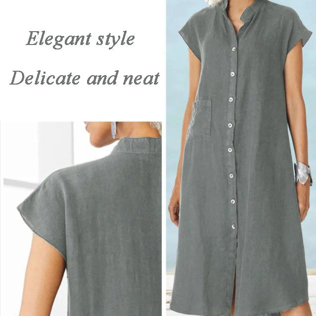 Löst sittande klänning i bomullslinne för kvinnor med fickor (50% rabatt)