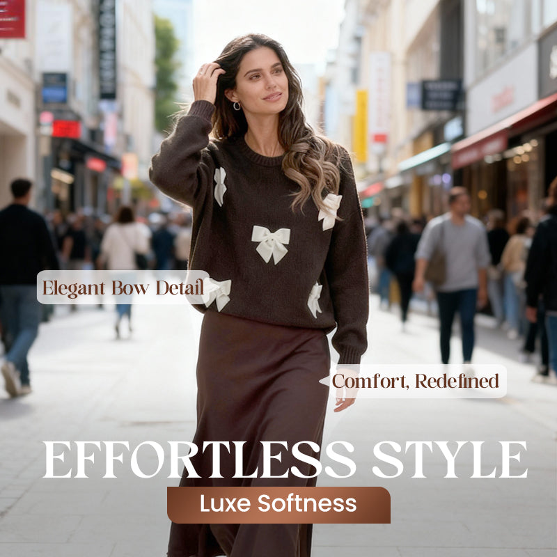 BÅGAR SOM VISKAR CHARM - Delikata bågar ger en mjuk, feminin touch som omedelbart lyfter din look. De ger stickningen en elegant glans och skapar en raffinerad känsla som är både modern och naturligt vacker.