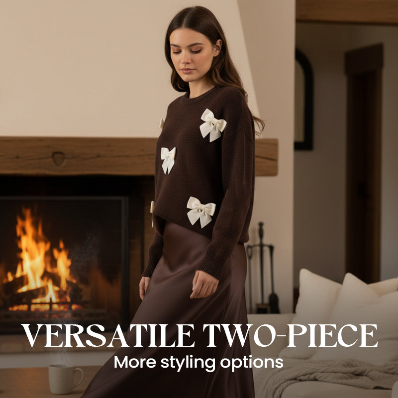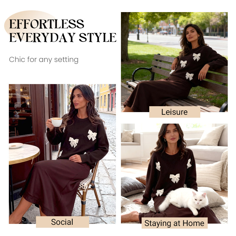 TVÅ PLAGG, OÄNDLIG ELEGANS – Bär tröjan och klänningen som ett matchande set eller kombinera varje plagg med dina favoritplagg i garderoben. Denna mångsidiga design öppnar upp för oändliga stylingmöjligheter och hjälper dig att uttrycka en elegant, feminin och självsäker look varje dag.
