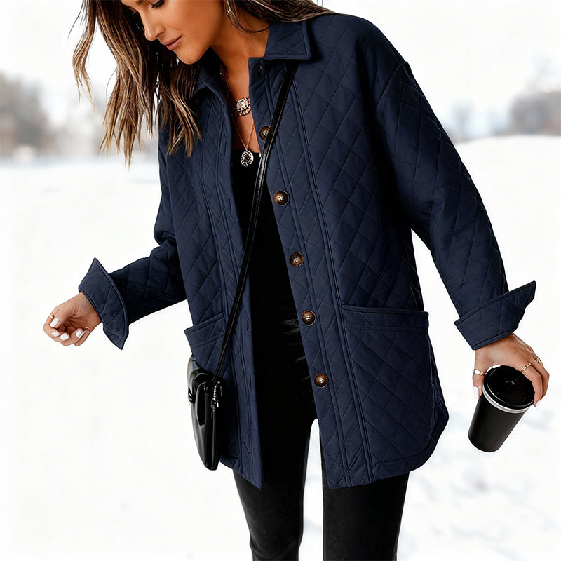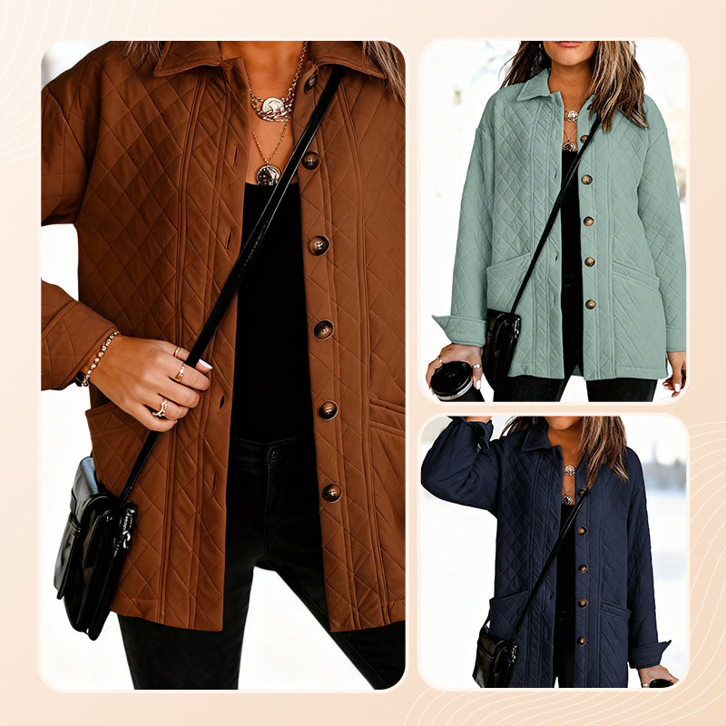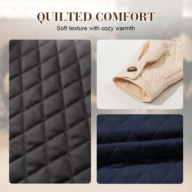 VADDERAD DESIGN – Upplev tidlös värme och struktur med det noggrant sydda vadderade mönstret. Denna design ger inte bara en fashionabel touch utan också lätt isolering, så att du kan hålla dig bekväm i kyligt väder utan onödig volym.