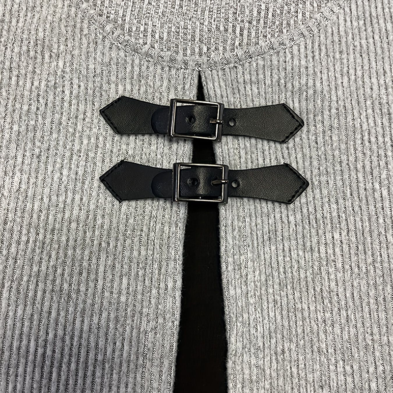 CHIC BUCKLE ACCENTS - Unika spännen i konstläder ger en touch av modern elegans och visuellt intresse. De fungerar som en stilfull blickfång och lyfter klänningen från en enkel basplagg till ett statementplagg.