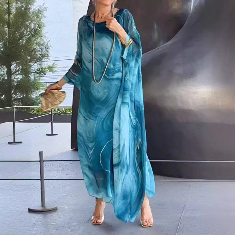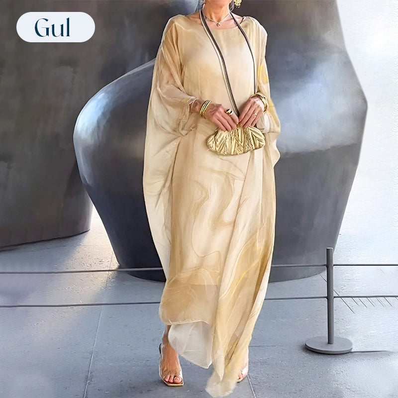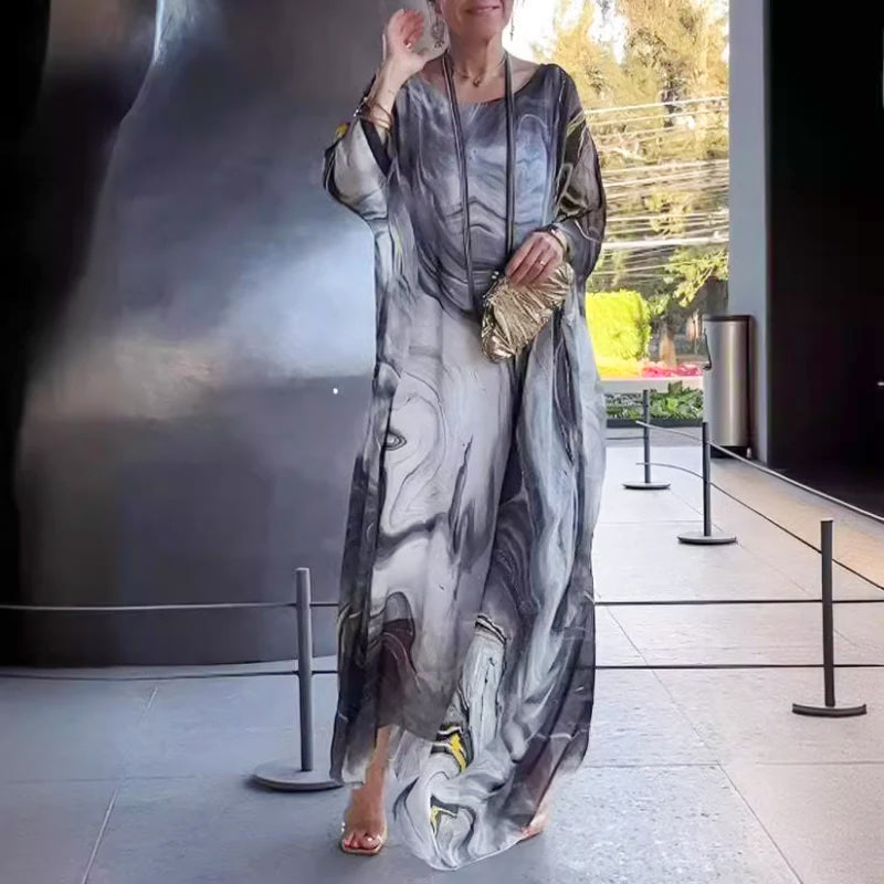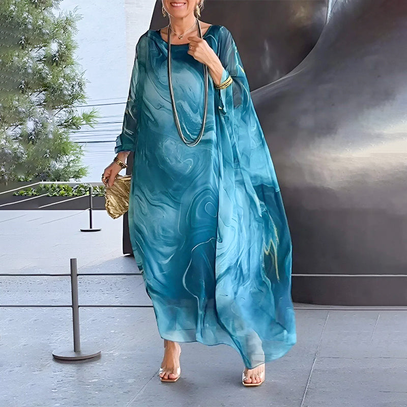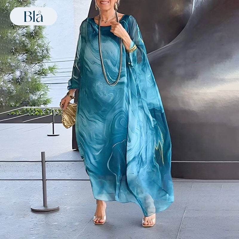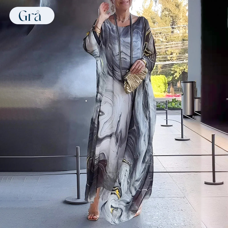 Elegant chiffongklänning med marmorliknande tryck