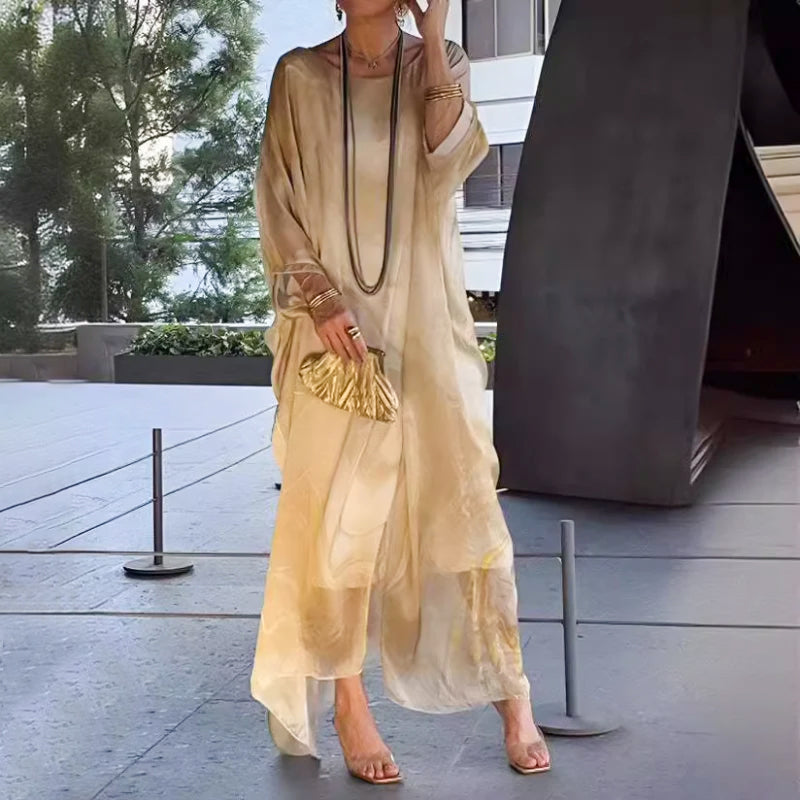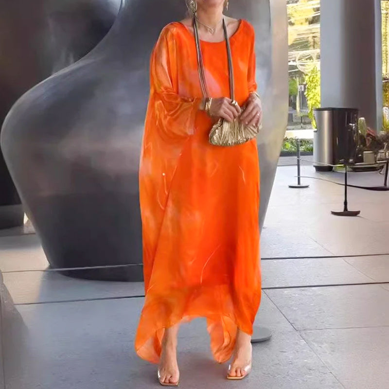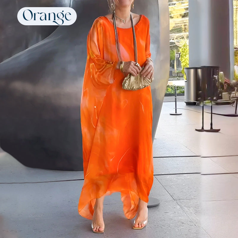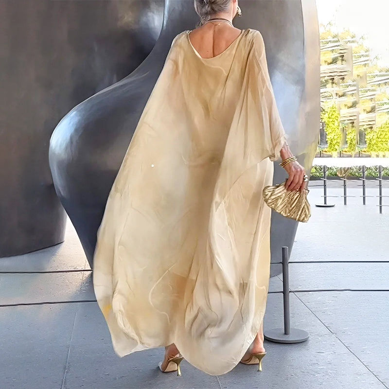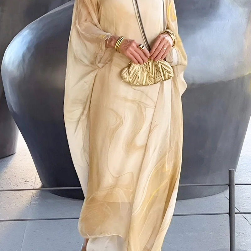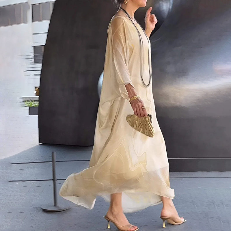 Elegant chiffongklänning med marmorliknande tryck