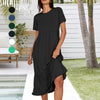 Paketet innehÄller: 1 * DamklÀnning med rund hals, plisserad enfÀrgad klÀnning
