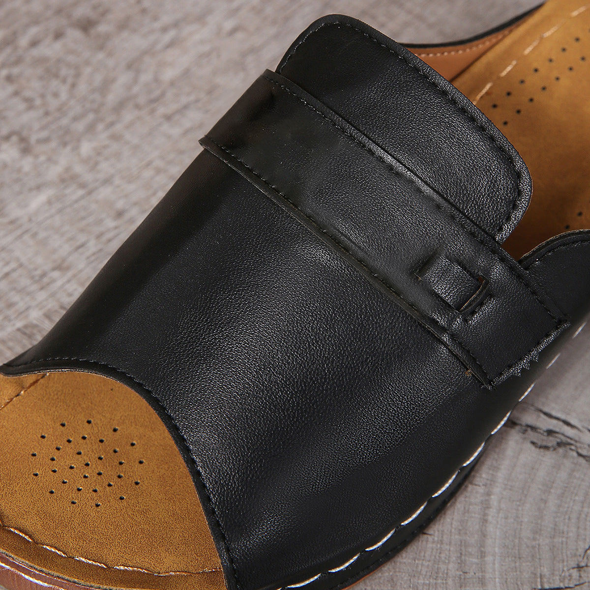PU-läderfoder som andas: Det högkvalitativa PU-läderfodret transporterar bort fukt samtidigt som det ger en mjuk, hudvänlig yta. Det förhindrar skav och håller fötterna svala, även när de bärs under långa perioder i varmt väder.