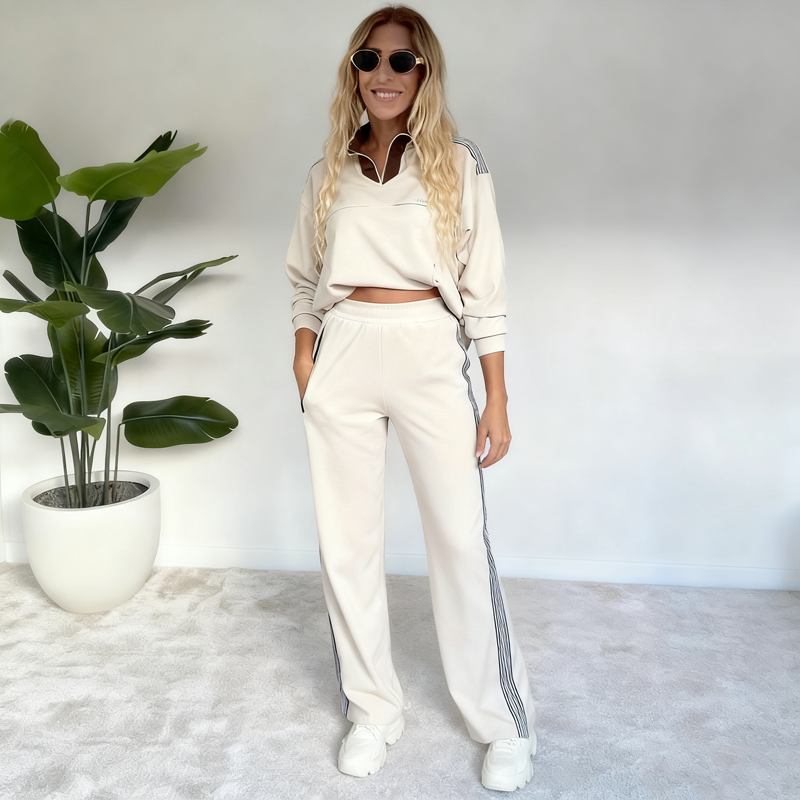 AVSLAPPAD OCH BEKVÄM PASSFORM – Garanterar full rörelsefrihet och komfort hela dagen lång. Tack vare det mjuka tyget och den rymliga passformen är detta set perfekt för att koppla av hemma, handla eller resa med stil.