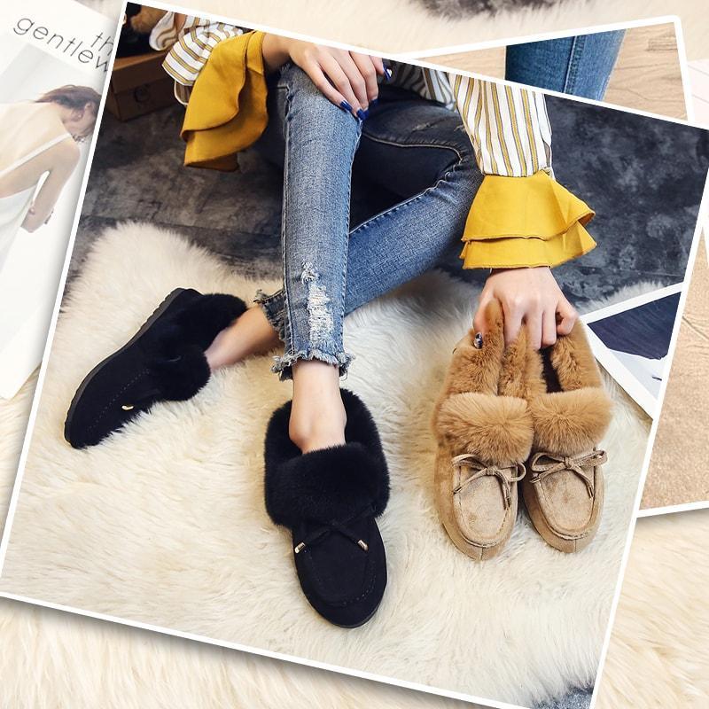 Kvinnors varma vinterskor Platta stövlar Tjocka plysch snöstövlar-Köp 2 få fri frakt