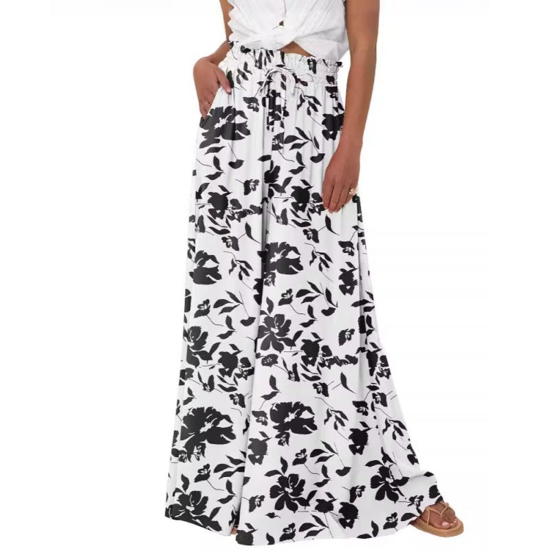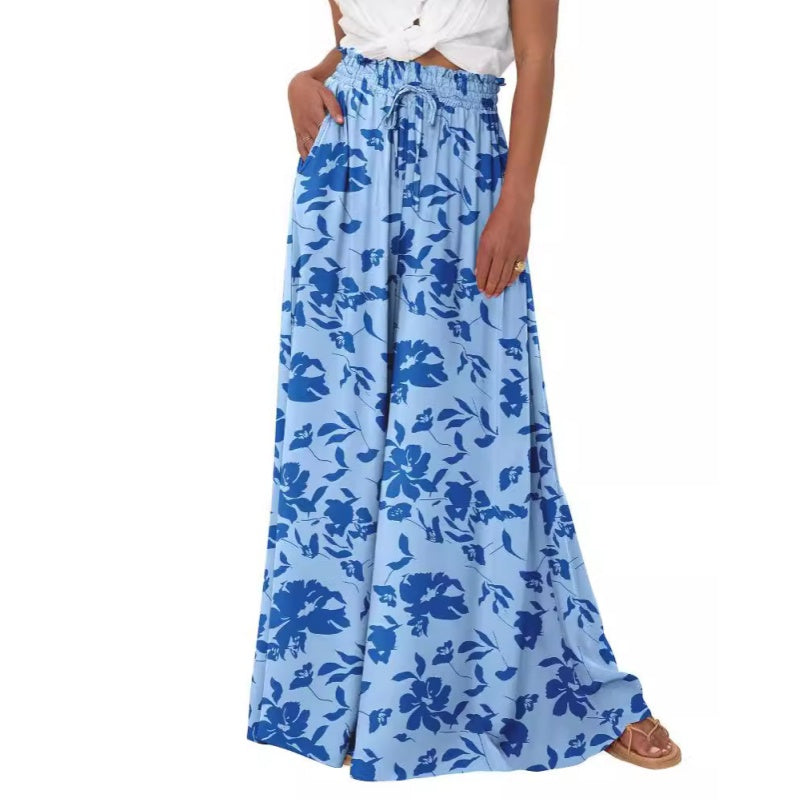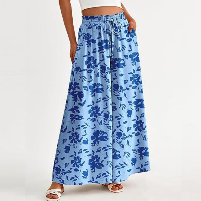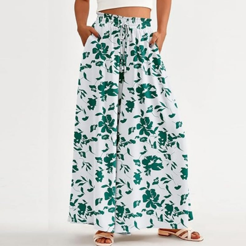 Paketet innehåller: 1*Floral Print byxor med vida ben och hög midja