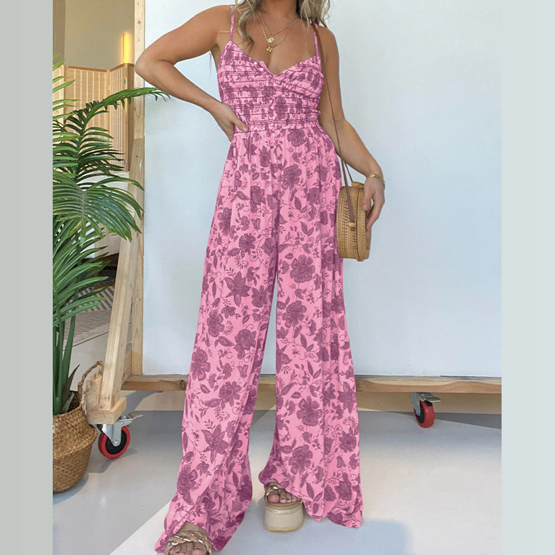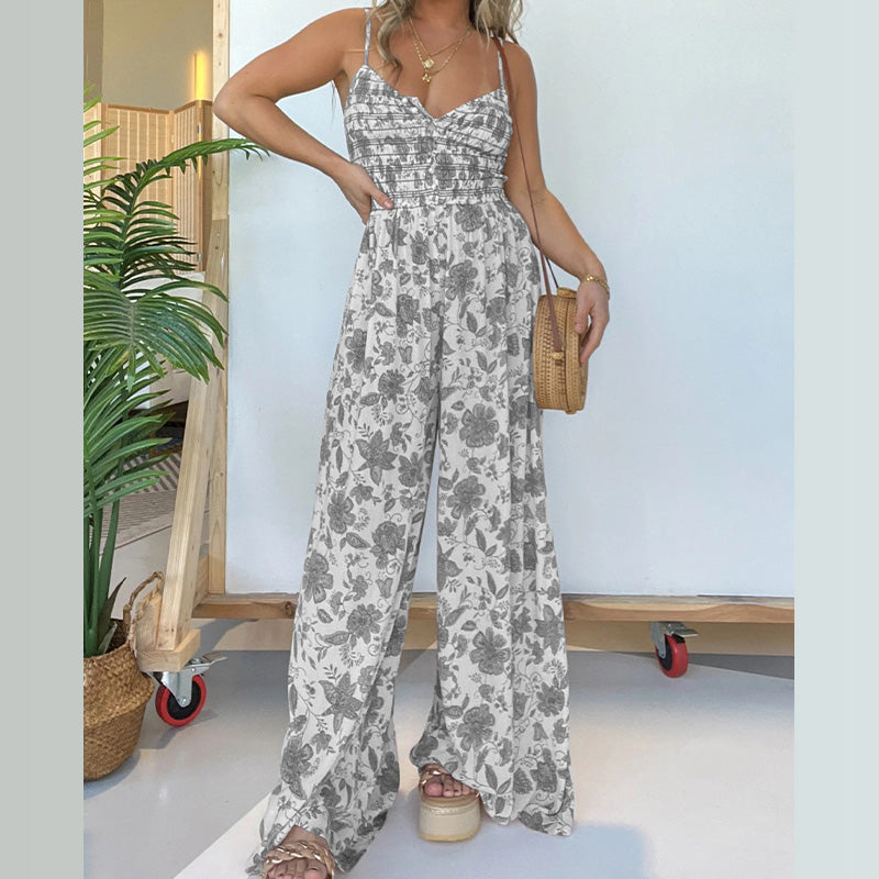 Blommig jumpsuit med hängselbygel och vida ben