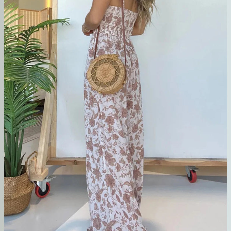 Vi presenterar vår blommiga hängselkjol med vida ben, den perfekta modebilden för dig som vill ha en blandning av stil, komfort och mångsidighet. Denna jumpsuit är designad för att lyfta din garderob med sitt trendiga blommönster, medan dess hängseldesign och vida bensilhuett ger en unik och smickrande passform. Oavsett om du ska på en avslappnad brunch, en sommarfest eller en dag ute med vännerna är denna jumpsuit ditt självklara val för ett enkelt och elegant mode.