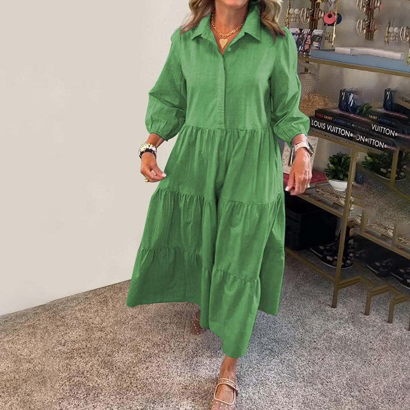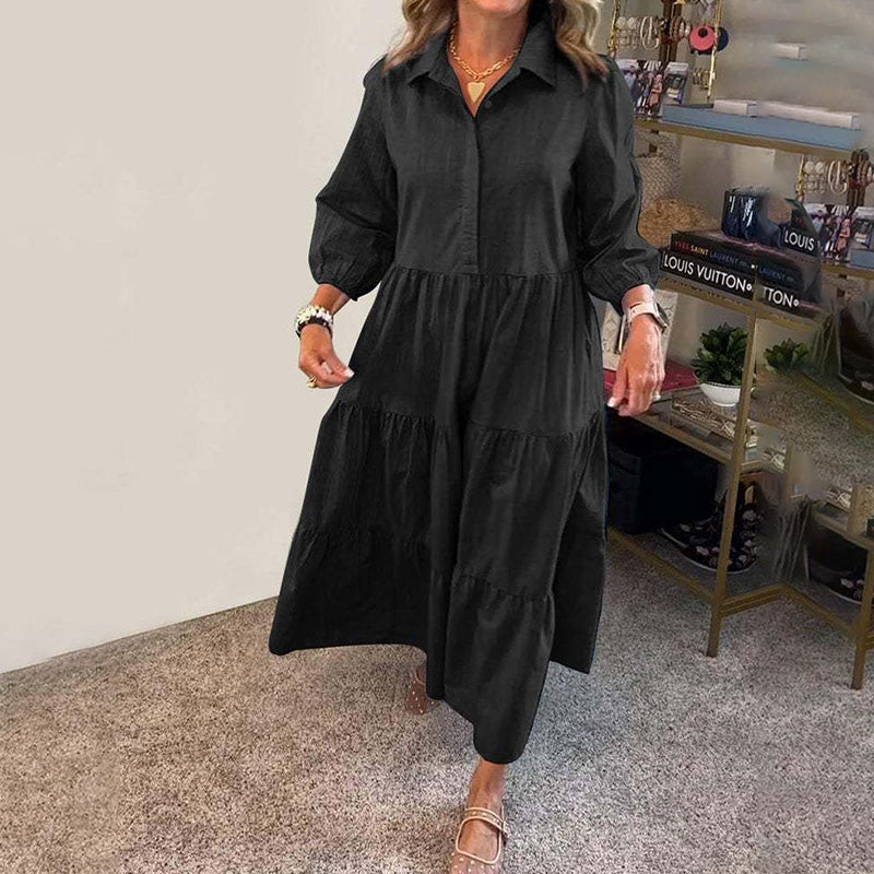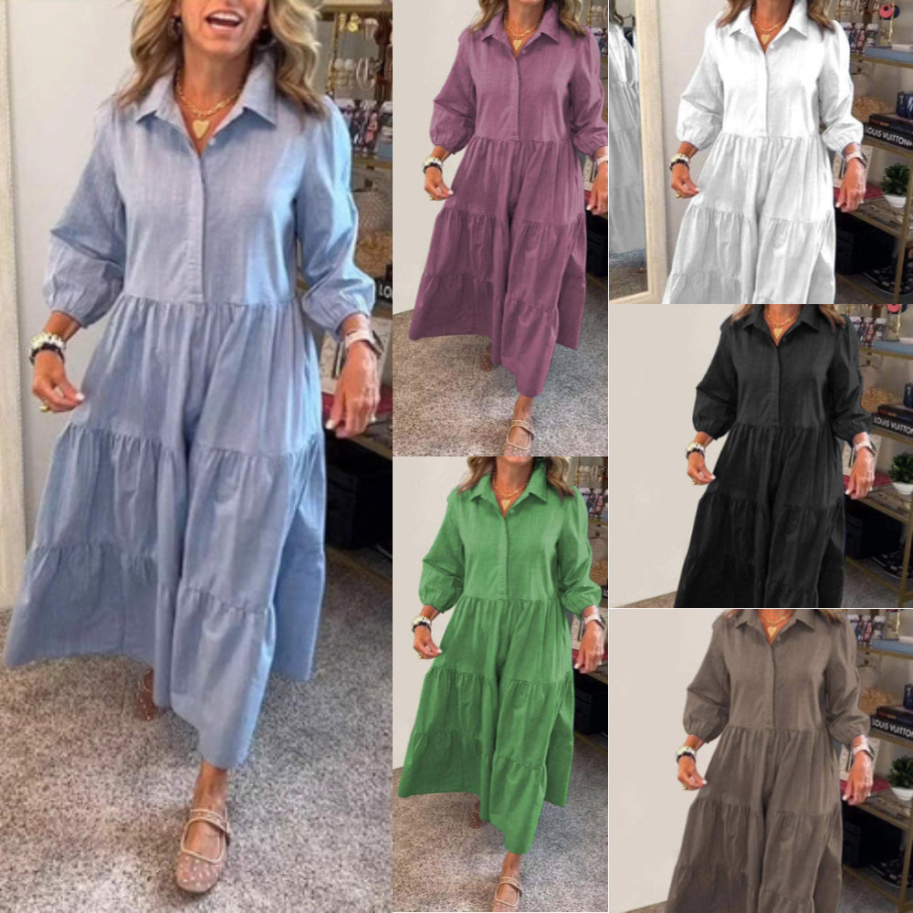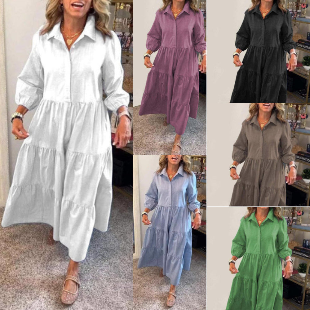 Paketet innehåller:1*Klänning för kvinnor med avslappnad puffig skjorta med uppslag