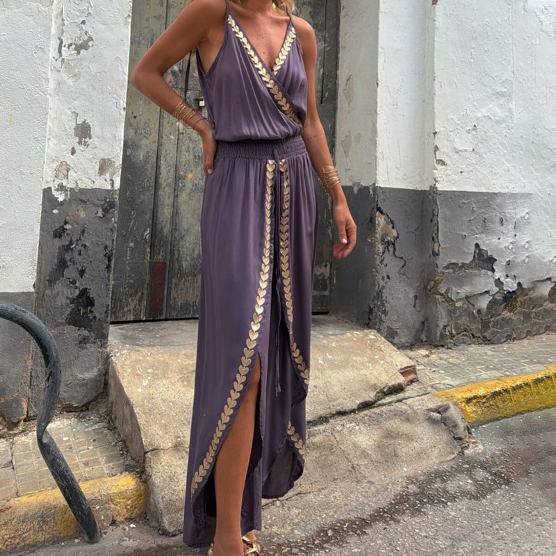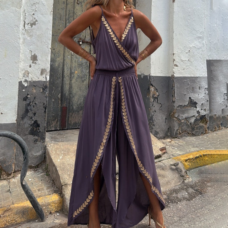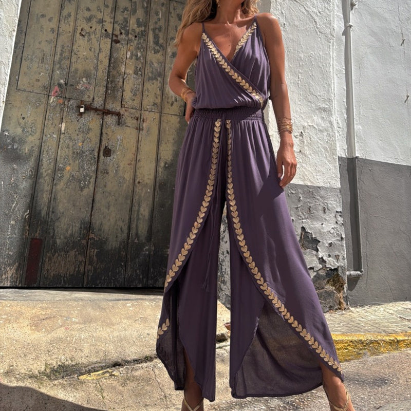 Paketet innehåller: 1* guldkantad, midjeknipande, lös jumpsuit med V-ringning