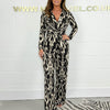 V-Neck Långärmad Leopard Zebra Jumpsuit
