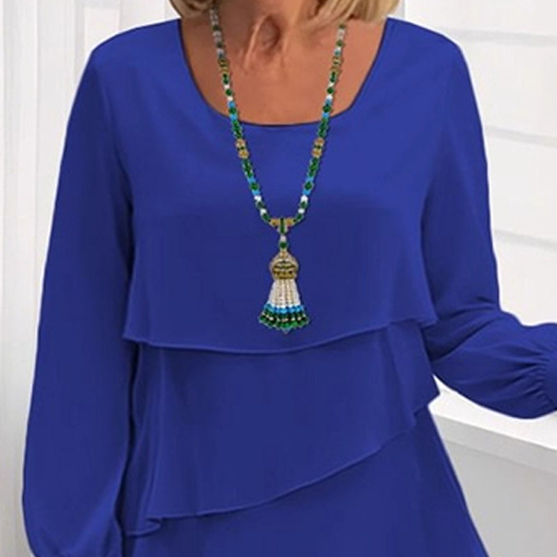 Långärmad klänning med lager på lager och volanger för kvinnor