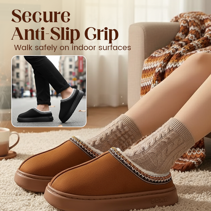 PLUSH SYNTHETIC FUR LINING - Omfamnar dina fötter med exceptionell värme och mjukhet, ger ett mysigt skydd mot kalla golv och garanterar komfort hela dagen medan du kopplar av och slappnar av hemma.
