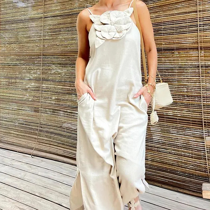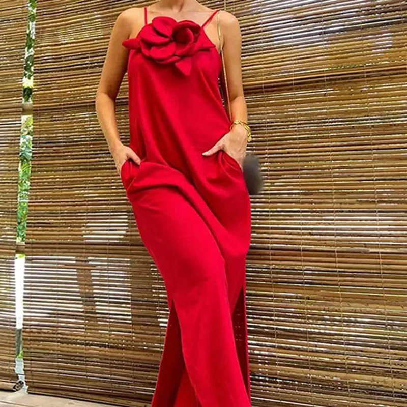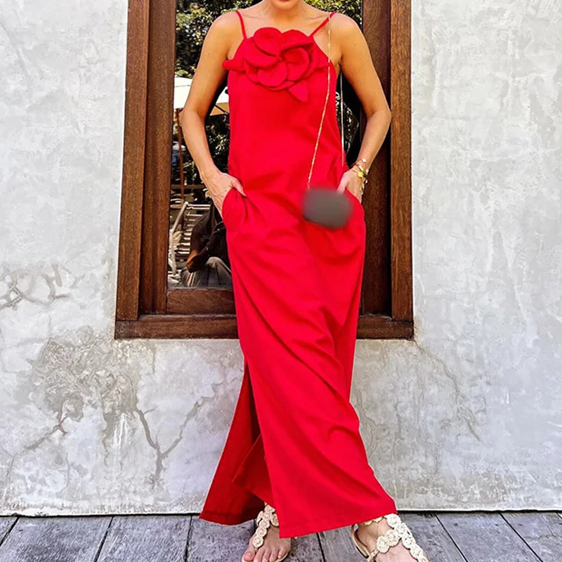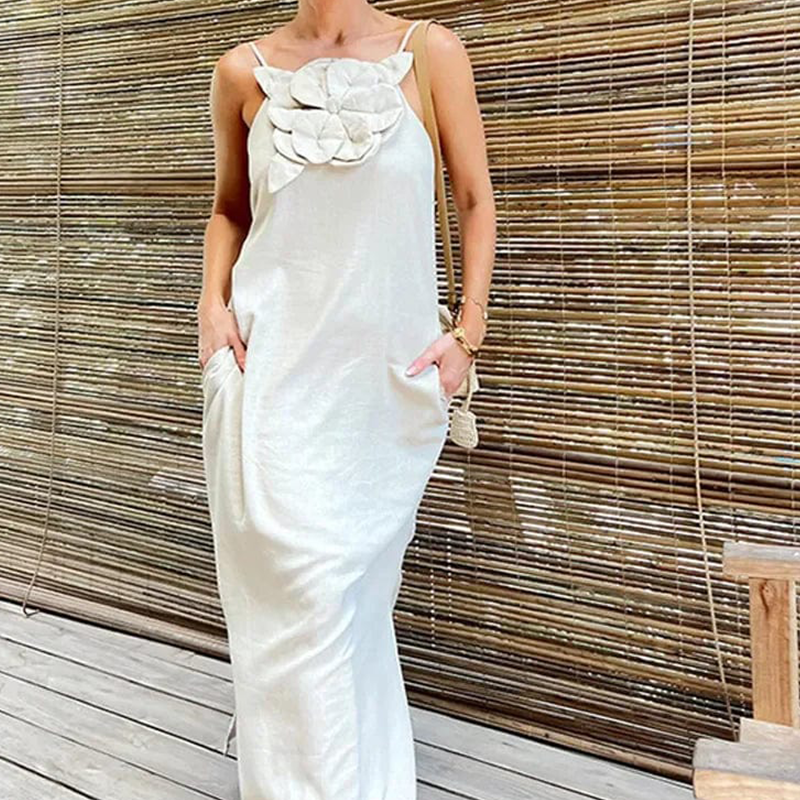 Paketet inkluderar: 1 * Elegant maxiklänning med spaghettiband och blommig accent för kvinnor