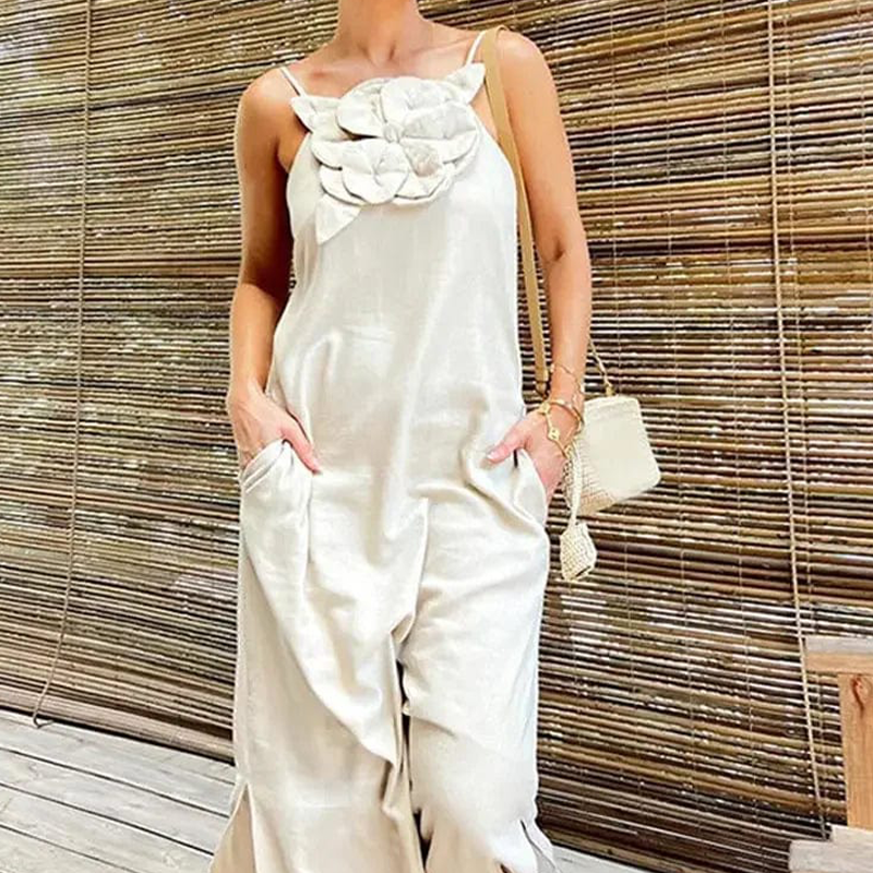 Elegant maxiklänning med spaghettiband och blommig accent för kvinnor