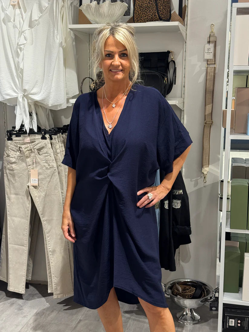 Ta steget in i en enkel elegans med vÄr kortÀrmade maxiklÀnning med knytdetalj. KlÀnningen Àr utformad för att ge bÄde komfort och stil, vilket gör den till ett mÄngsidigt tillskott till din garderob.