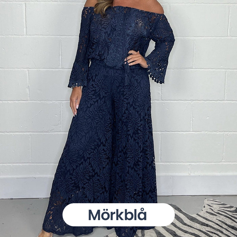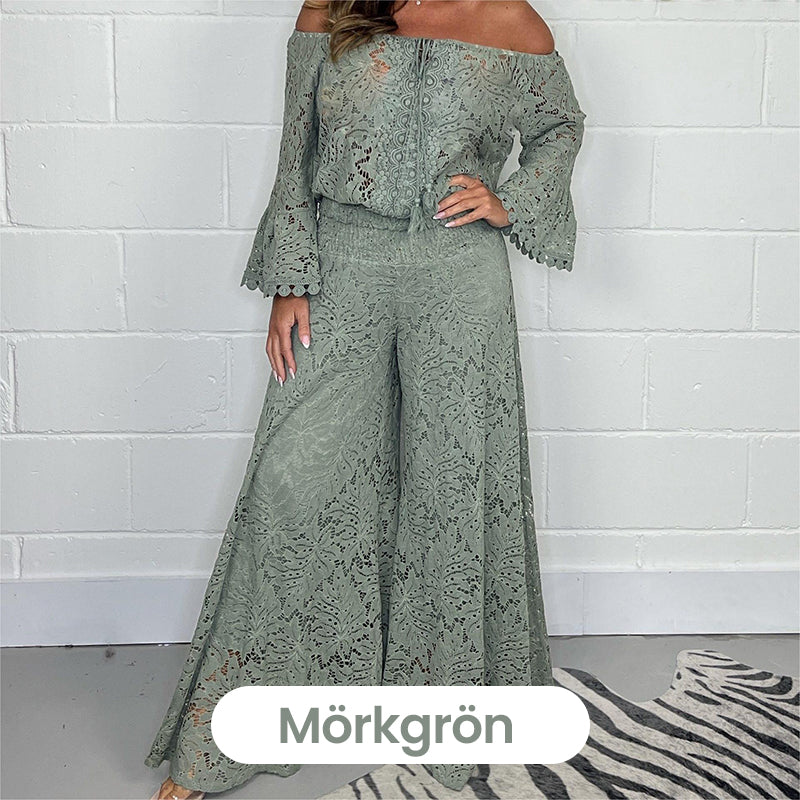1 * Feminin tvådelad Off-Shoulder Top och Wide Leg Pant Set
