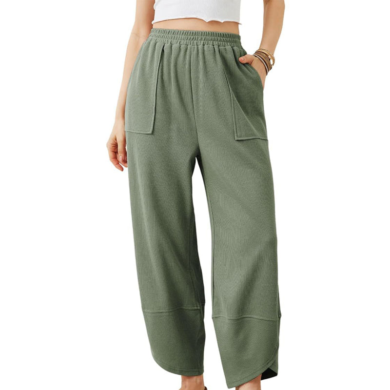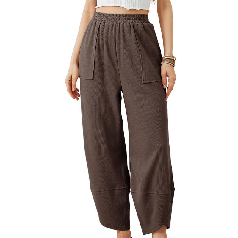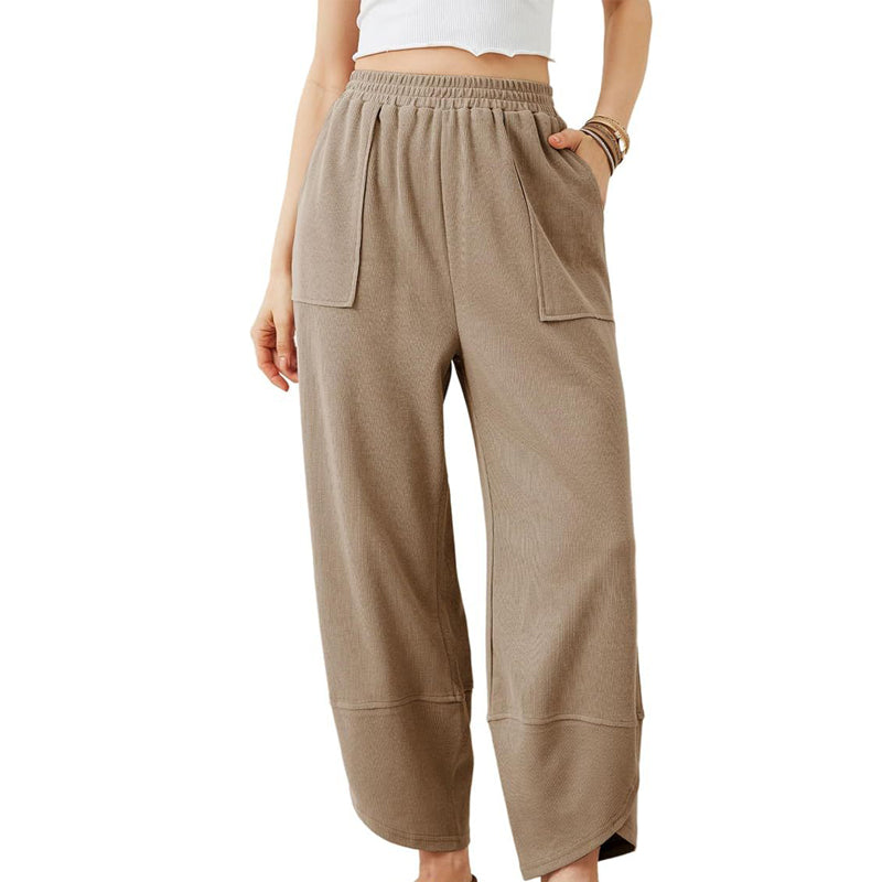 Kvinnors avslappnade ankelbyxor med lös passform och elastisk midja