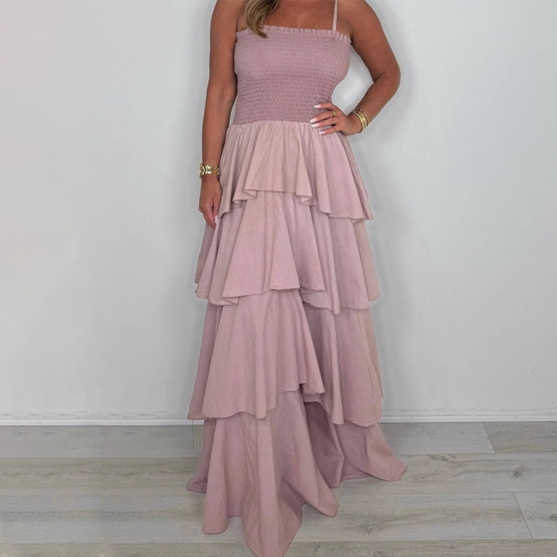 ✨2025 New Arrivals ✨Maxiklänning med trassel och smockad botten