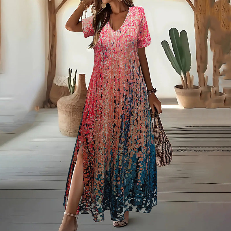 Fantastiskt blommigt tryck: lyft din stil med vår slående blommiga design. Varje klänning har ett livfullt, detaljerat mönster som ger en touch av elegans till din avslappnade garderob. Perfekt för dig som vill sticka ut samtidigt som du är bekväm.