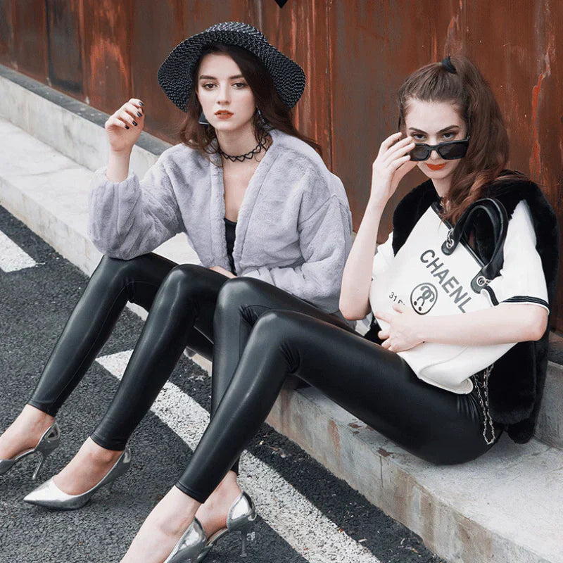 Kliva ut med stil och elegans i dessa bekväma PU-läderleggings!