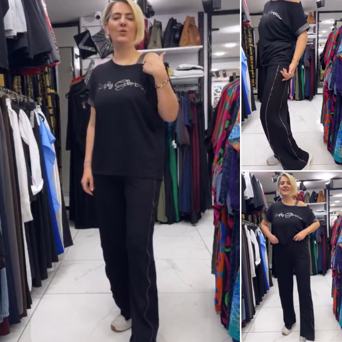 Loose Fit Off Shoulder T-Shirt & Byxor med vida ben Set