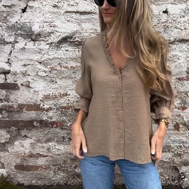 ELEGANT V-HALS - Denna vackert designade djupa V-hals ramar in nyckelbenen och skapar en smickrande, förlängd silhuett, vilket ger en sofistikerad charm till din vardagslook utan att vara alltför avslöjande.