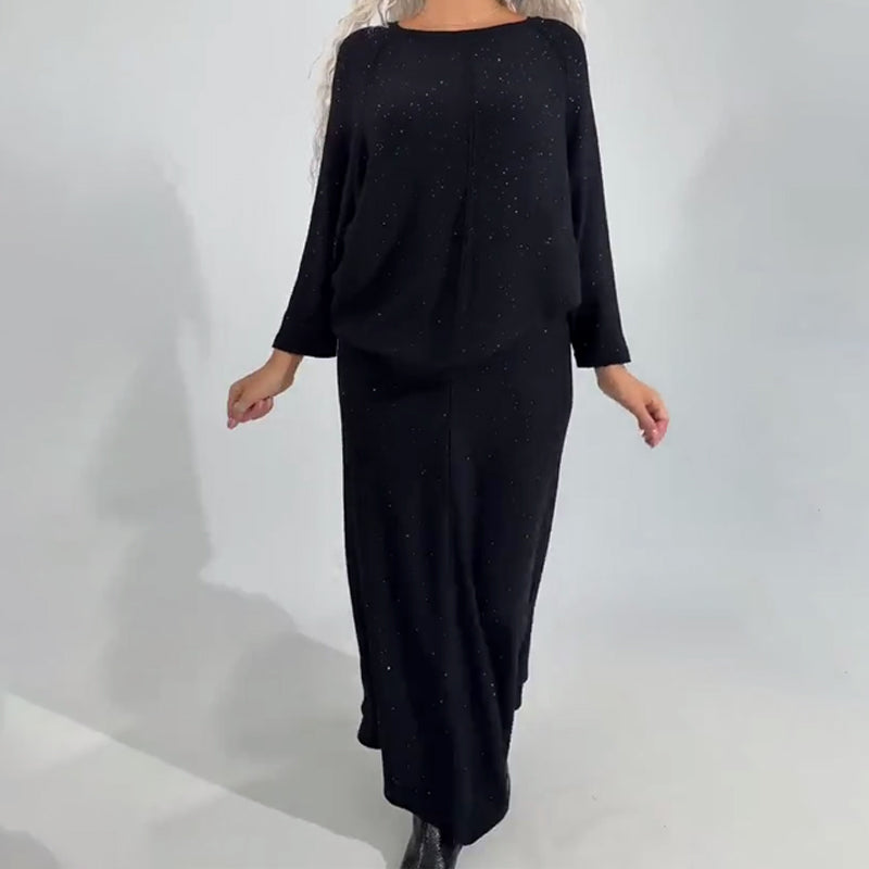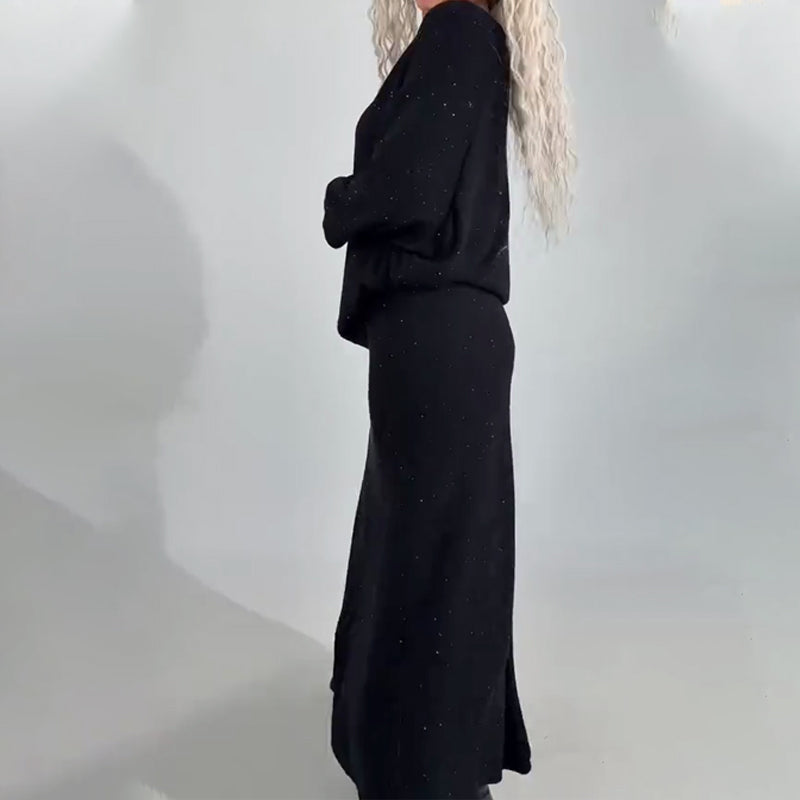 Paketet innehåller: 1 * Damtröja med långa ärmar och glitterstickning & kjol, 2-delat set