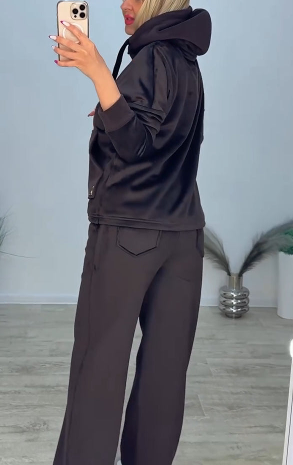 This casual, solid-color set features a classic and elegant design, far surpassing ordinary casual wear.