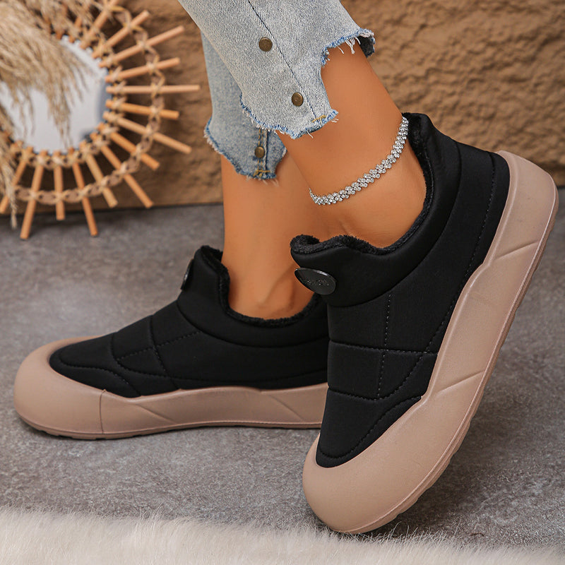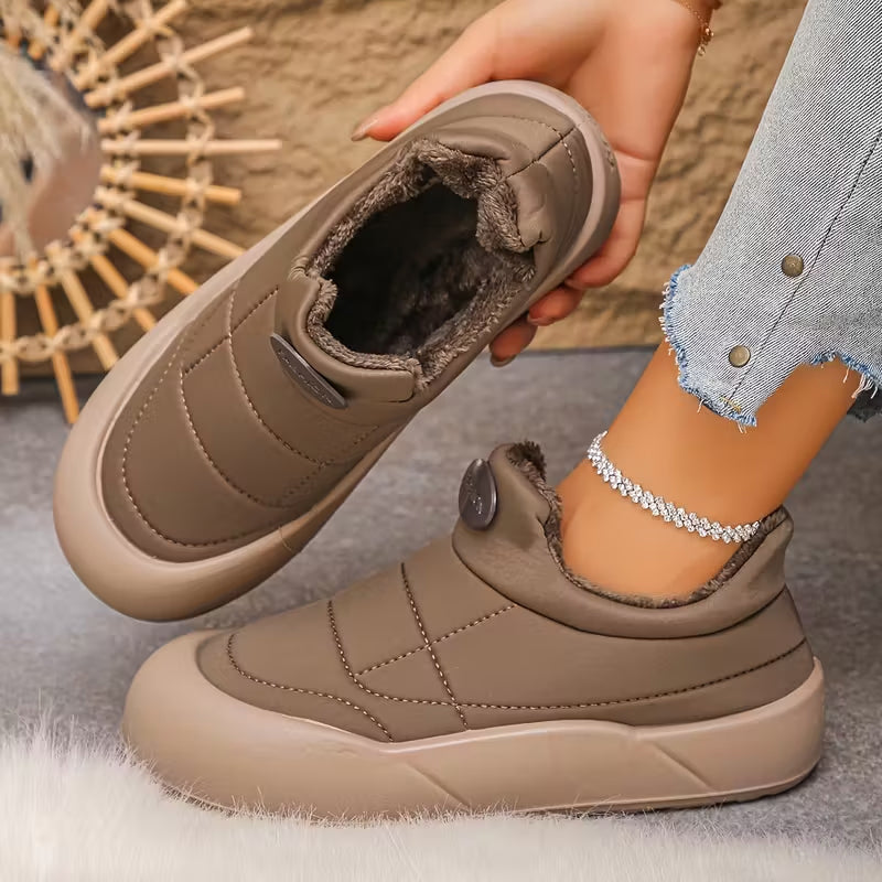 BEKVÄM SLIP-ON-MODELL – Dessa skor har en praktisk slip-on-design som gör dem lätta att ta på och av, vilket sparar tid i vardagen. Deras mångsidiga utseende passar till en rad olika vinterkläder, vilket gör dem till ett lämpligt val för olika tillfällen, från avslappnade utflykter till resor.