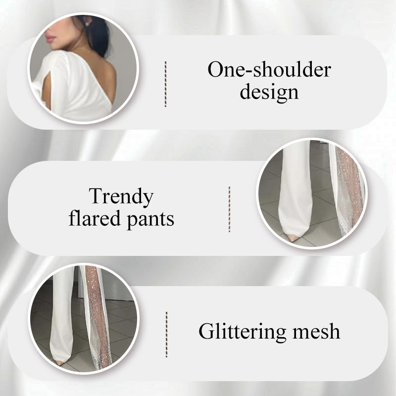 ✨50% OFF👠Glittrande utsvängd jumpsuit med axelband i mesh🖤