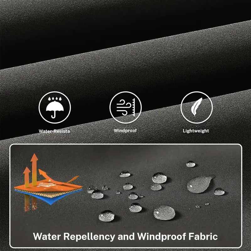 VINDAVSTĂ ENDE RYNKELĂ TERFĂRANDE TYG: Tillverkad av högkvalitativt, lĂ€tt tyg konstruerat för att motstĂ„ vind och rynkor. Det hĂ„ller formen efter lĂ„ngvarigt bruk eller packning, vilket eliminerar behovet av frekvent strykning.