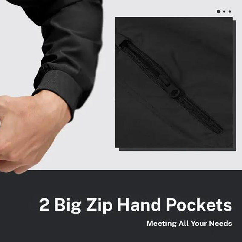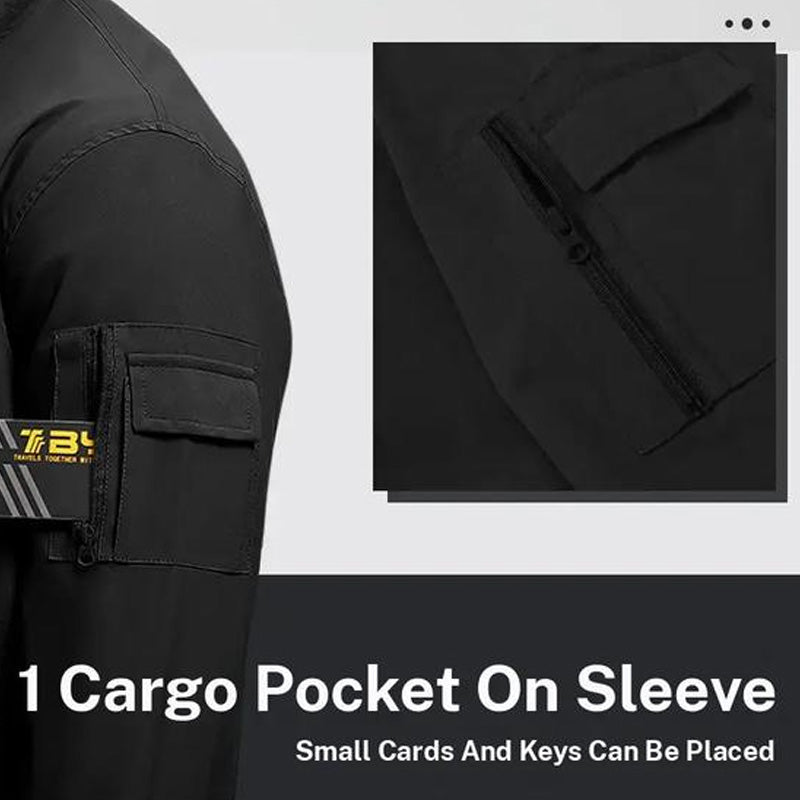 FUNKTIONELL FICKA: En dedikerad blixtlÄsförsedd ficka pÄ vÀnster Àrm erbjuder sÀker förvaring för smÄsaker som nycklar eller hörlurar. Denna detalj blandar praktiskhet med djÀrv design, bryter monotonin i enfÀrgade fÀrger och ger en praktisk kÀnsla som lyfter vardagslivet.