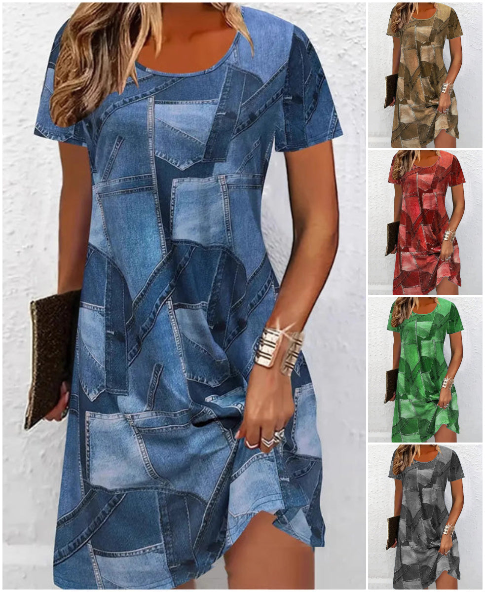 Avslappnade Klänning med Lapptäcksmönster för Kvinnor