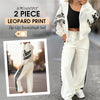2-delat träningsset för kvinnor med leopardmönster och dragkedja