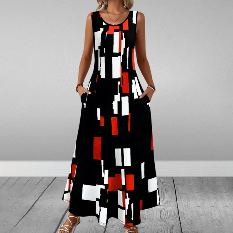 Paketet innehåller: 1* tryckt ärmlös klänning med rund hals och ankellängd