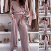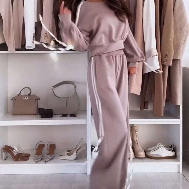 KLASSISKT 2-DELAT SET: Detta tidlösa 2-delade set består av en klassisk rundhalsad topp och byxor med vida ben. Det är ett mångsidigt basplagg i garderoben, perfekt för att skapa en polerad men ändå bekväm outfit.
